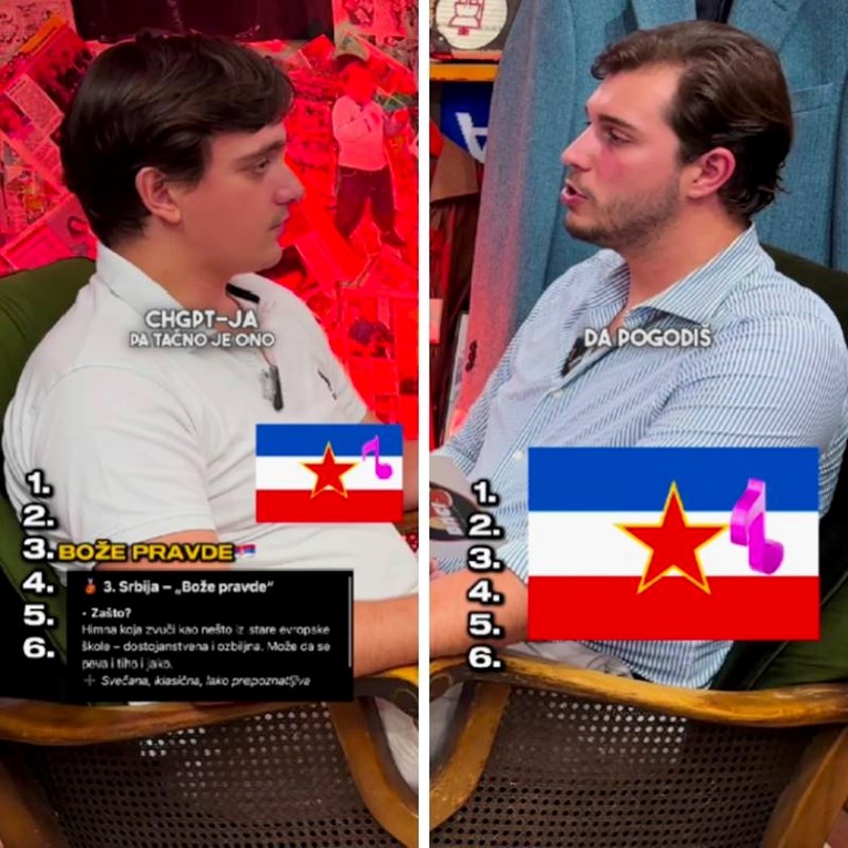 VODITELJI srpskog podcasta Baci5 u jednoj od nedavnih epizoda odlučili su testirati umjetnu inteligenciju i postaviti joj pitanje: koja država bivše Jugoslavije ima najljepšu himnu?