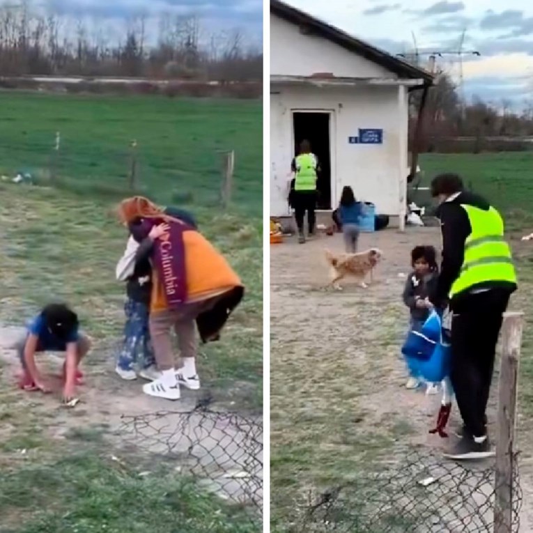 Prolazeći pored jedne kuće u čijem su se dvorištu igrala mala djeca, studenti su im prišli i podijelili s njima svoje grickalice i slatkiše. Jedan od njih je ušao u kuću, vjerojatno da roditelje pita za dozvolu, dok su preostale djevojke grlile djevojčice kojima su iz ruku ispadali slatkiši.