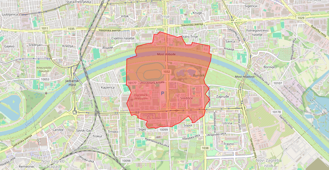 Karta iznad prikazuje koliko bi prostora zauzeo Glastonbury kad bi se preslikao na dio Zagreba koji će biti središte Thompsonovog koncerta.