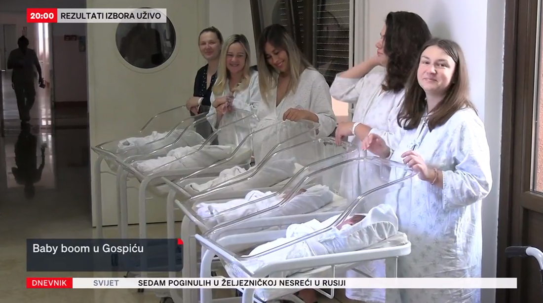 "Nije to toliko često, 6 beba, 4:2 vode žene. Do danas u Ličko-senjskoj županiji je rođeno čak 24% više beba nego lani u ovo doba", rekao je Darko Milinović, voditelj odjela za porodništvo, gradonačelnik i bivši ministar zdravstva.