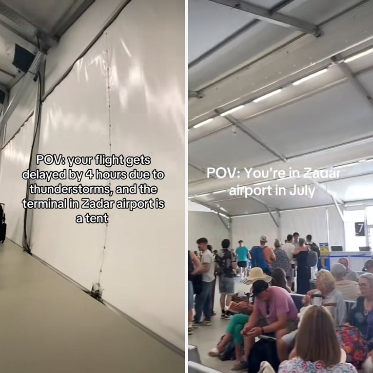 TIKTOKOM kruže snimke putnika zatečenih prizorom u Zračnoj luci Zadar. U svojim videima pokazuju veliki šator u kojem moraju čekati ukrcaj, a mnoge iznenađuje i šokira da se takva scena odvija usred sezone - i to u zemlji koja živi od turizma.