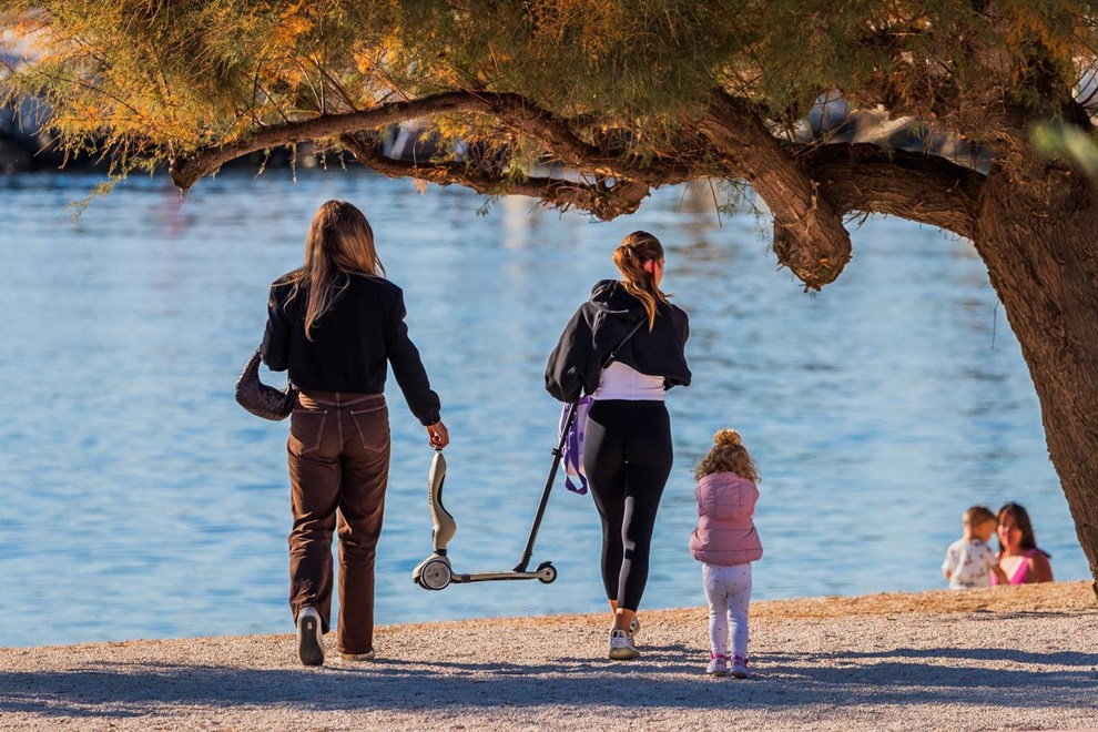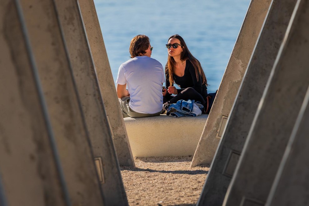 Mnogi stanovnici Splita iskoristili su lijep dan za šetnju i druženje na rivi i plažama, a oni najhrabriji čak su se presvukli u kupaće kostime kako bi uhvatili još malo jesenskog sunca.
