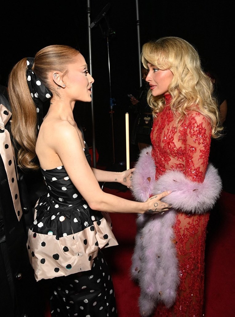 Snimka koja se proširila internetom prikazuje dvije pop zvijezde u razgovoru iza pozornice. U jednom trenutku su se zagrlile, no neugodnost je nastala kada je Carpenter krenula u još jedan zagrljaj, a Grande nije uzvratila na isti način.