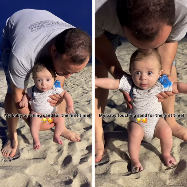 MAJKA Sabrina Al-Khal sa suprugom i sinom nedavno je bila na plaži te je odlučila snimiti prvu reakciju svoje bebe kada osjeti pijesak na stopalima. Dok je njezin suprug držao bebu, Sabrina je sve snimila ni ne očekujući da će uspjeti zabilježiti preslatku reakciju.