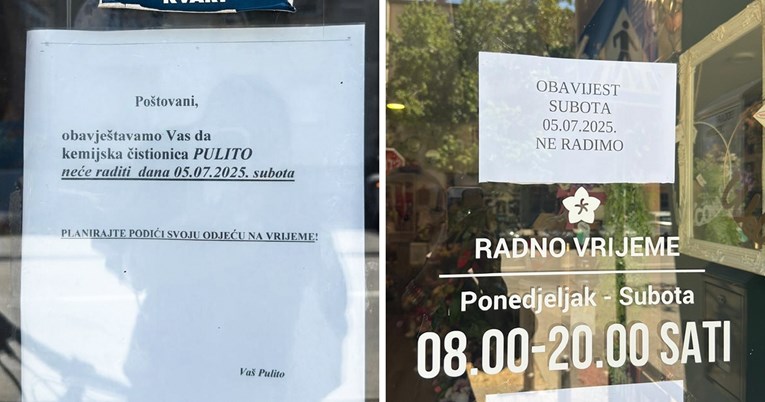 Na više mjesta postavljene su obavijesti kako cijelu subotu neće raditi. Uglavnom se radilo o manjim obrtima, poput cvjećarni u Središću i kemijskih čistionica na Kajzerici, kojima jedna odrađena subota može puno značiti. Neki su se ipak odlučili na opciju pola radnog vremena, pa će u subotu "potegnuti" od 7, a završiti u 13 sati.