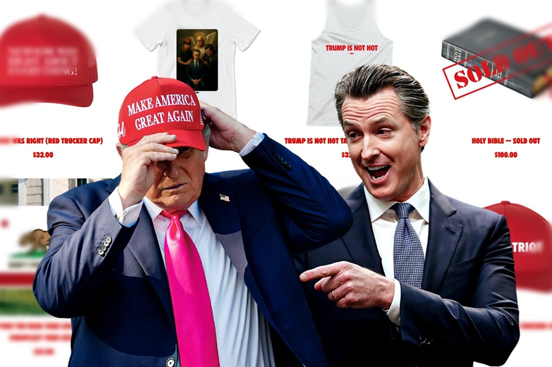 GUVERNER Kalifornije Gavin Newsom još se jednom okomio na predsjednika Donalda Trumpa, a ovaj put je to učinio pokretanjem internetske trgovine naziva PATRIOT koja nudi proizvode koji parodiraju Trumpov merch, uključujući crvenu šiltericu na kojoj umjesto MAKE AMERICA GREAT AGAIN piše NEWSOM WAS RIGHT ABOUT EVERYTHING i majicu na kojoj piše TRUMP IS NOT HOT, ismijavajući njegov slogan, izjave i naviku pisanja velikim slovima.