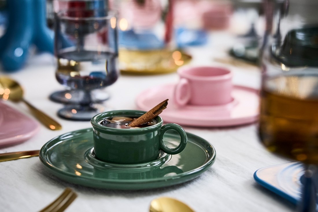 Tu je i porculanska šalica s predimenzioniranim tanjurićem, osmišljena za glögg (kuhano vino). Ideja dolazi iz Westmanovih uspomena na blagdanske kolače njegove bake - tanjurić je dovoljno velik da stane i napitak i keksi, tipična kombinacija švedske fike.