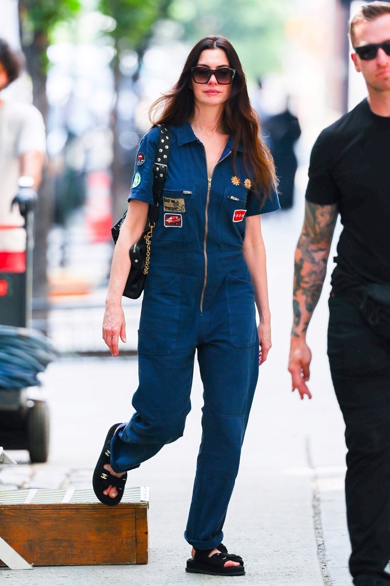 Ubrzo se pojavila i još jedna fotografija, također sa seta u New Yorku, na kojoj glumica nosi plavi kombinezon Re/Done x Ford Mechanic - ponovno uz iste sandale (glavna fotka).