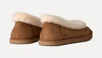Model Ugg Zora izrađen je od mekane brušene kože s prepoznatljivom podstavom od janjeće kože, koja jamči toplinu i udobnost. Zbog svog svestranog dizajna mogu se nositi u ležernim i svečanijim prilikama, a predstavljaju prozračniju alternativu klasičnim Ugg čizmama za toplije jesenske dane.