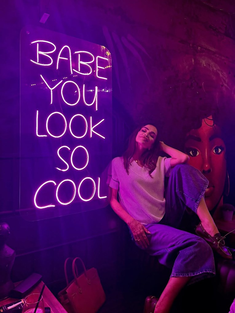 Jednostavna kombinacija koja nikad ne izlazi iz mode naglašava njezinu prirodnu ljepotu, dok odabir udobnih, ali elegantnih komada pokazuje kako i najosnovniji styling može izgledati šik.
