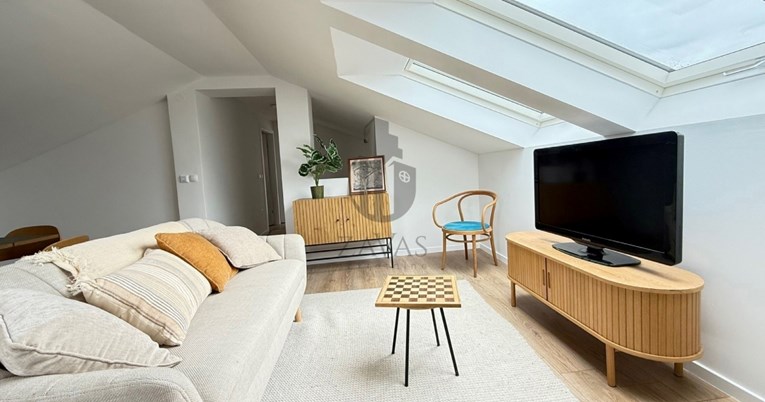 Stan se sastoji od spavaće sobe, kuhinje, kupaonice s WC-om, dnevnog boravka i hodnika. Uređen je moderno i prozračno, a obilje dnevnog svjetla osiguravaju krovni prozori. Ima podno grijanje, a zgrada je dodatno poboljšana termofasadom i novim krovištem.