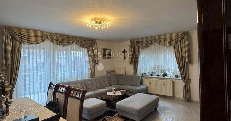 Stan u potkrovlju sadrži dnevni boravak, kuhinju, blagovaonicu, dvije sobe, kupaonicu i balkon. Kuća ima i veliki, kompletno uređen podrum, uređenu i popločenu okućnicu, dodatnu garažu od 30 m² i prostor za vrt. Cijena nekretnine iznosi 190.000 €.