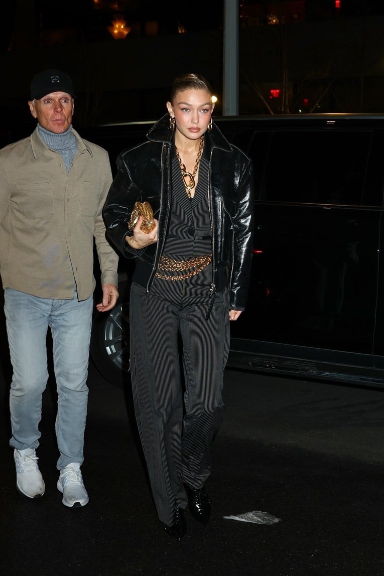 Za event povodom lansiranja parfema Rabanne Million Gold For Her u New Yorku, Gigi se odlučila za sofisticirano, ali odvažno izdanje s mnoštvom zlatnih detalja. Posebnu pažnju privukao je njezin metalni remen, koji je više nalikovao masivnoj zlatnoj ogrlici omotanoj oko bokova.