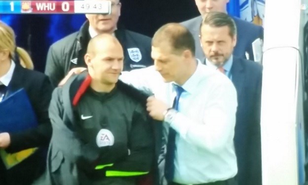 No, prije sporne situacije u sudačkoj nadoknadi i prije nego što je West Ham okrenuo utakmicu, Bilić je skinuo sako i njime ogrnuo četvrtog suca koji je stajao kraj klupe Čekićara.