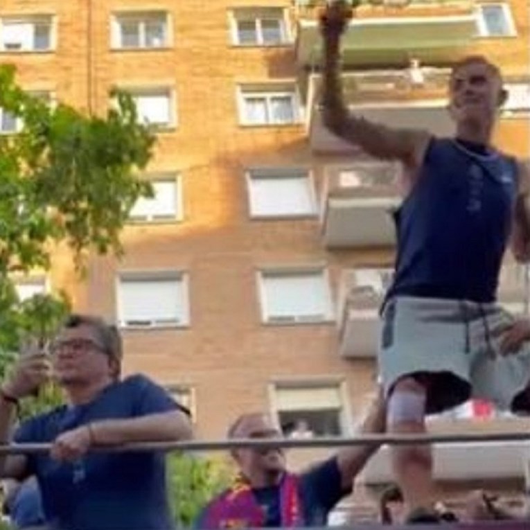 Nogometaše Barce pozdravili su deseci tisuća navijača. Njima su iz autobusa mahali igrači te navijali i pjevali s njima. Najraspojasaniji u slavlju bio je Fermin Lopez (22), koji je visio s ruba autobusa skačući i pjevajući. Da ne padne i ne ozlijedi se, spriječio je trener Hansi Flick (60). On je svog igrača, kojem može biti djed, čvrsto držao za hlače da ne padne dok je Fermin neobuzdano slavio.