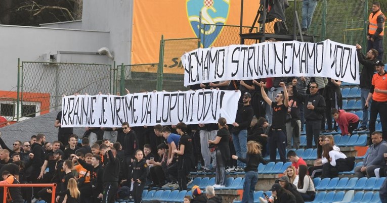 Funcuti su na ovoj utakmici protestirali protiv aktualne uprave, a na transparentu je pisalo: "Nemamo struju, nemamo vodu, krajnje je vrijeme da lopovi odu." O problemima Šibenika pisali smo OVDJE. Vlasnik Šibenika je Željko Karajica. Gazde kluba stožer i igrači uglavnom viđaju samo na utakmicama protiv Dinama i Hajduka.
