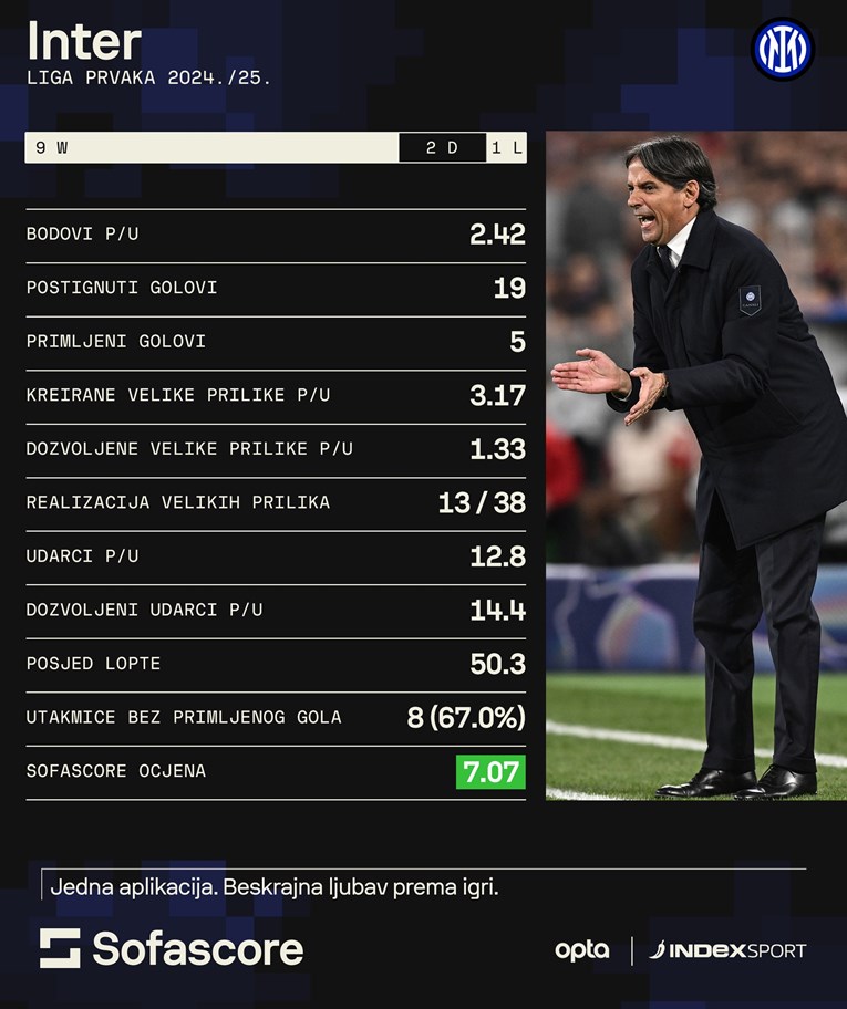 Inzaghijeva čitava trenerska karijera prožeta je uspjesima ili barem ozbiljnim otporom u ovakvom tipu natjecanja, a to se jasno ocrtava i ove sezone. Nakon ligaške faze Lige prvaka, Inter je primio samo jedan gol i to u 90. minuti od Leverkusena, dok su favorizirane engleske klubove potpuno zatvorili. S Cityjem su odigrali 0:0, dok su Arsenal pobijedili s 1:0.
