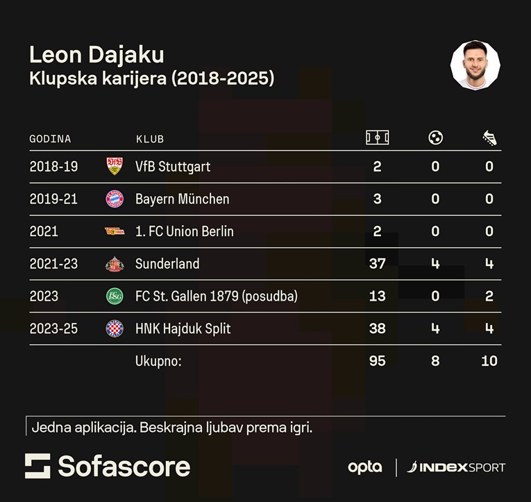 Podsjetimo, Dajaku je napadač rođen u Njemačkoj, a ima i tamošnje državljanstvo. U Hajduk je stigao u ljeto 2023. kao slobodan igrač, nakon što mu je prestao važiti ugovor s engleskim Sunderlandom. Za Bijele je odigrao 38 utakmica u kojima je dao četiri gola i četiri puta je asistirao suigračima.