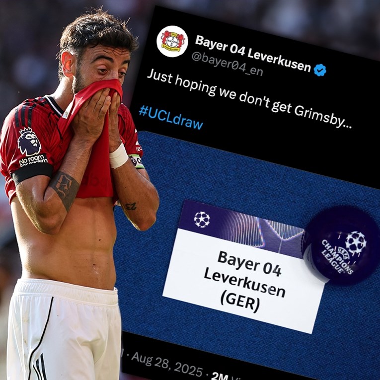 BAYER LEVERKUSEN se uoči ždrijeba Lige prvaka našalio s Manchester Unitedom. Leverkusen je objavio papirić s imenom svoga kluba te u status napisao: "Samo da ne izvučemo Grimsby."