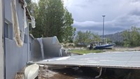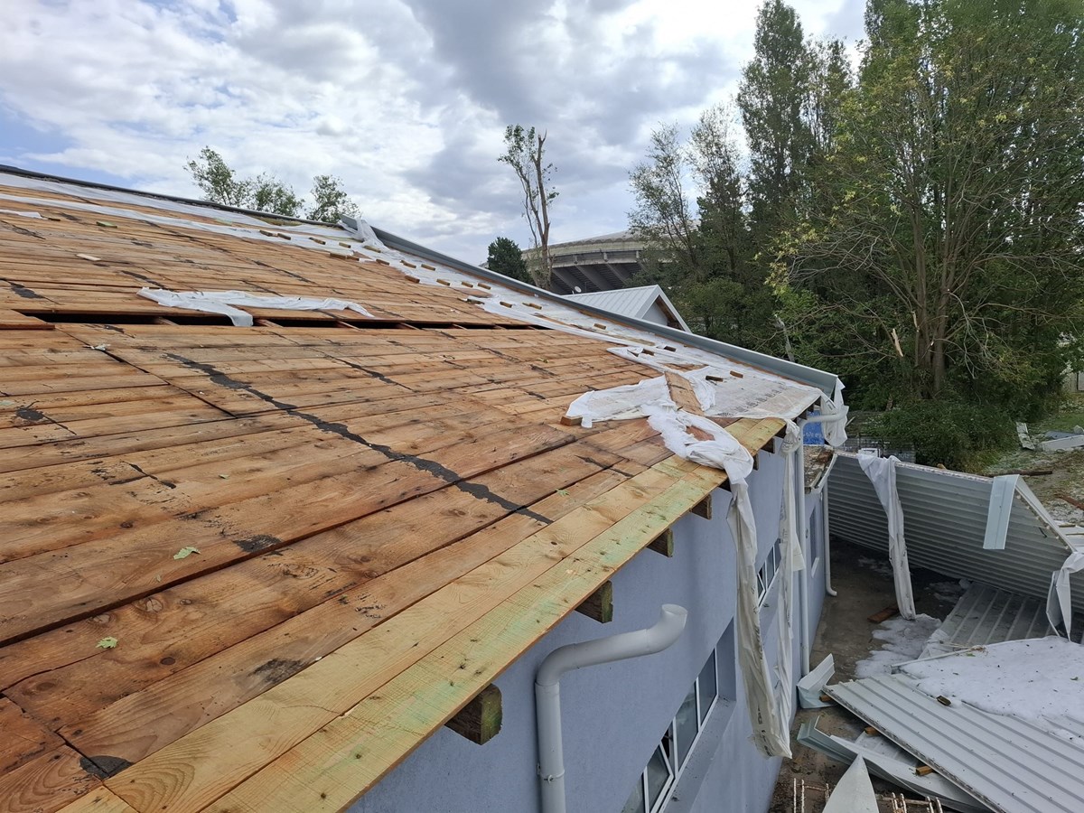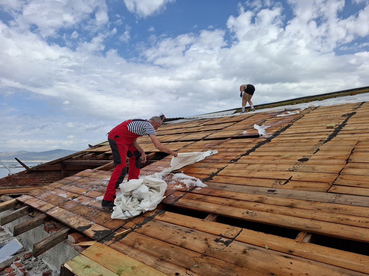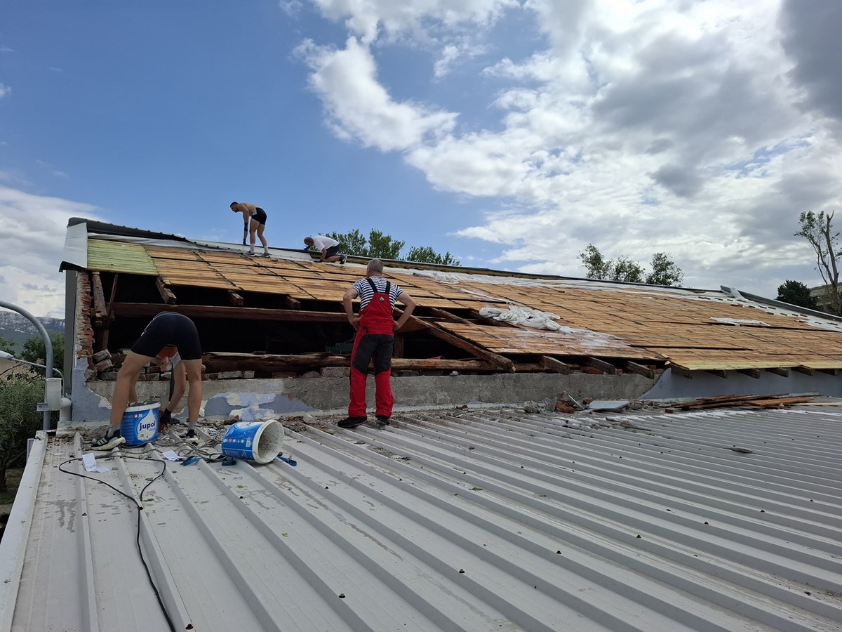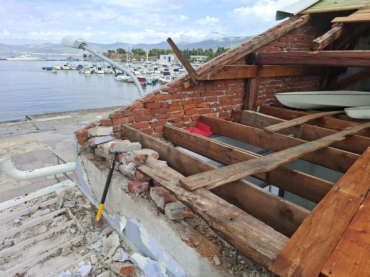 Mladići kantama izbacuju vodu. Ovo su posljedice nevremena u Veslačkom klubu Mornar
