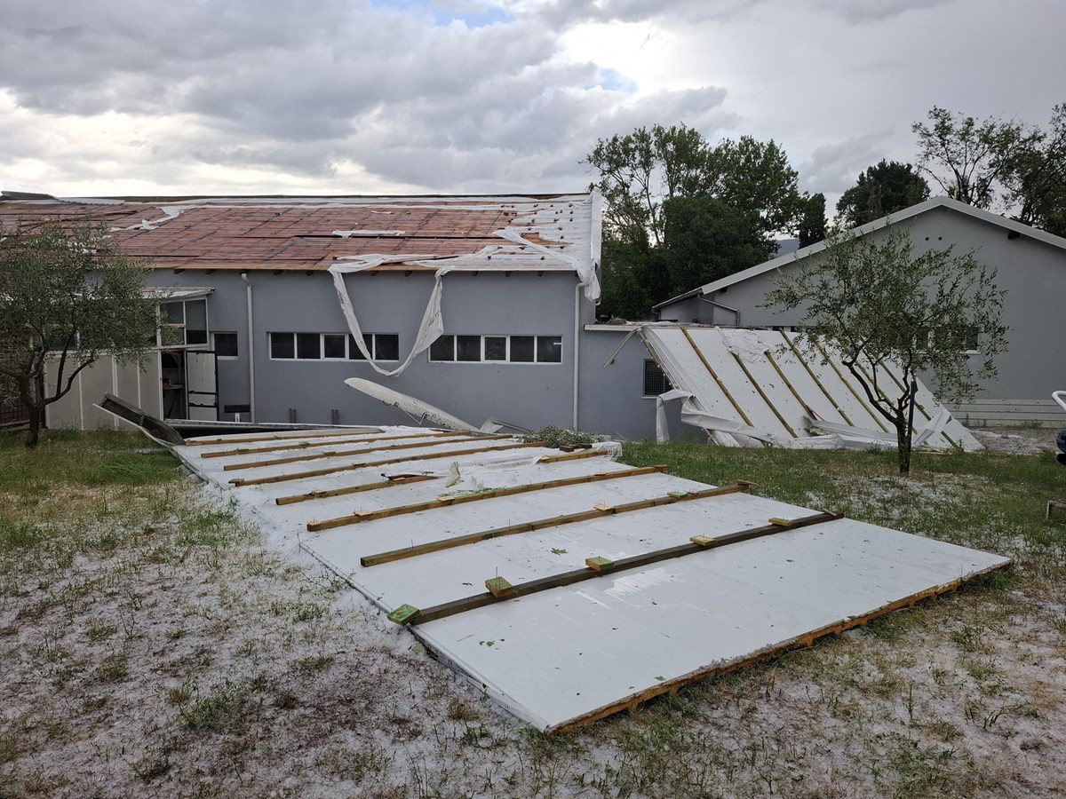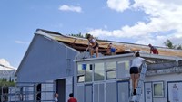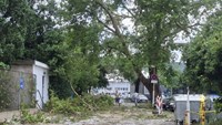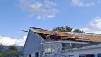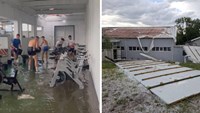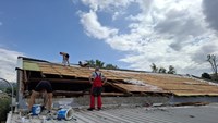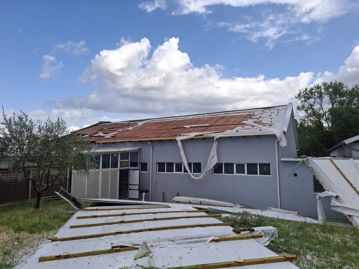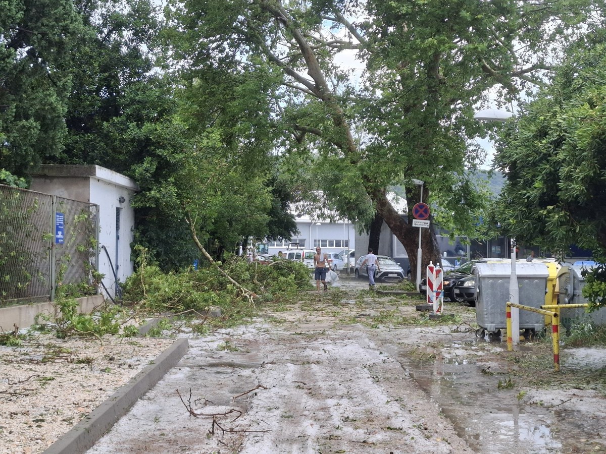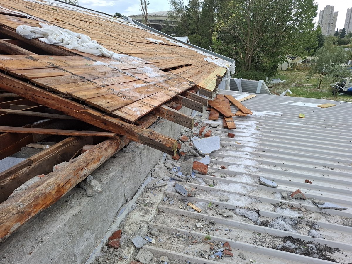 Mladići kantama izbacuju vodu. Ovo su posljedice nevremena u Veslačkom klubu Mornar
