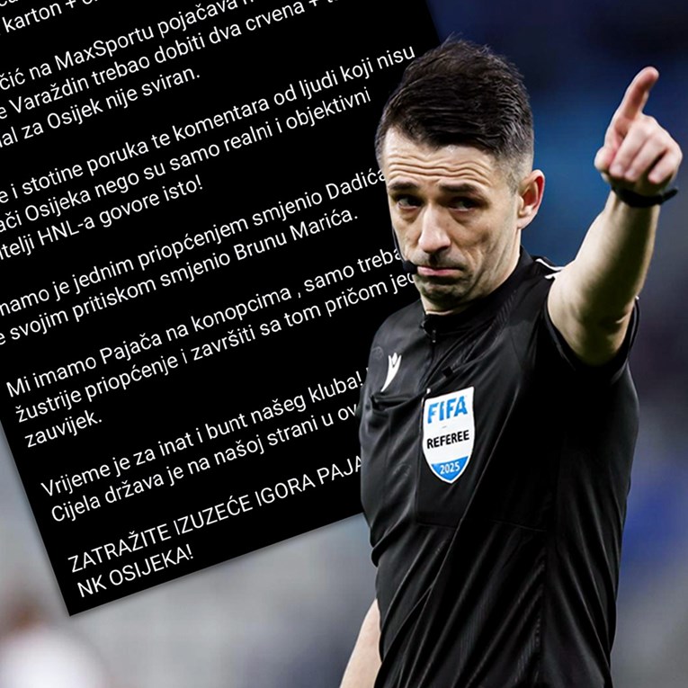 NE STIŠAVAJU se protesti Osijeka i njegovih navijača na suđenje u trećem kolu SuperSport HNL-a. Podsjetimo, iz Osijeka su u ponedjeljak na službenim kanalima objavili videozapise kojima su se požalili na suđenje Igora Pajača, smatrajući da su oštećeni za crveni karton i jedanaesterac. Iako Sudačka komisija nije takvog mišljenja, mnogi su u ovoj priči na strani Osijeka.