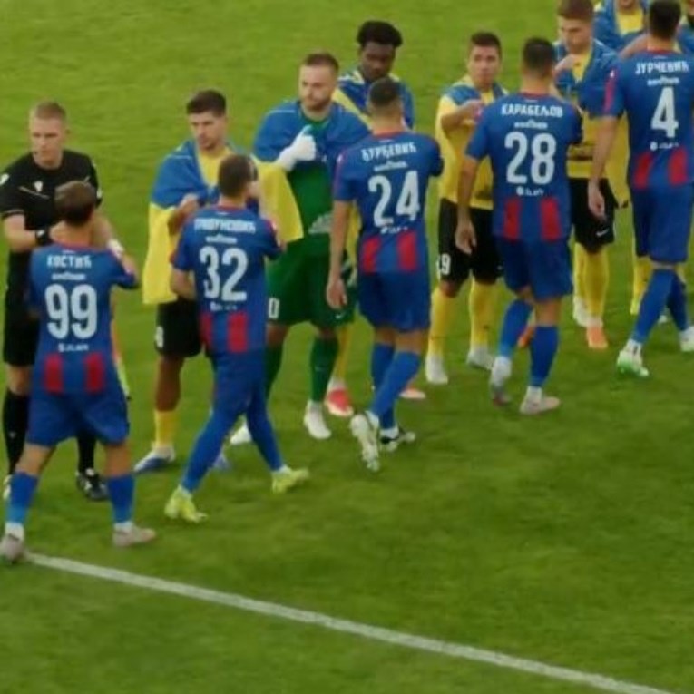 NOGOMETAŠI ukrajinske Oleksandrije odbili su se rukovati s igračima Partizana prije početka utakmice drugog pretkola Konferencijske lige. Ukrajinci su bili ogrnuti zastavama svoje zemlje dok su pored njih prolazili igrači Partizana te im nisu pružili ruku.