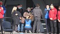 Na ispraćaju su bili supruga Kornelija, predstavnici kluba, igračice Podravke, navijači, prijatelji i poznanici, ali i slučajni prolaznici…