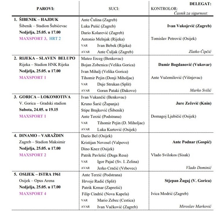 Rasplet započinje u 17 sati. Rijeka drži sve u svojim rukama i pobjeda protiv Slaven Belupa donijet će joj titulu, dok Dinamu za naslov trebaju pobjeda protiv Varaždina i posrtaj Rijeke. U najtežoj situaciji je Hajduk, ali ne i nemogućoj.