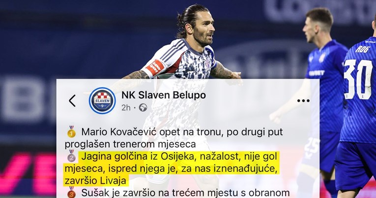 No, koprivnički klub iznenađen je što je Jagušićev gol završio na drugome mjestu, iza Livajinog. "Jagina golčina iz Osijeka, nažalost, nije gol mjeseca, ispred njega je, za nas iznenađujuće, završio Livaja", napisao je Slaven Belupo na društvenim mrežama, dok u opširnijem priopćenju stoji: