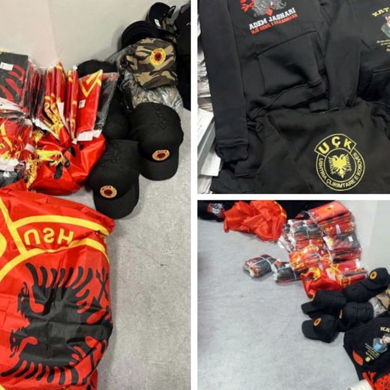 Kod njega je policija našla pet torbi sa sadržajem koji je zabranjen u Srbiji. Riječ je o 22 majice, 244 zastave i 86 kapa s natpisom KLA, 65 majica sa slikom Agima Ramadanija, 58 šalova s albanskim grbom, kao i 92 kape.