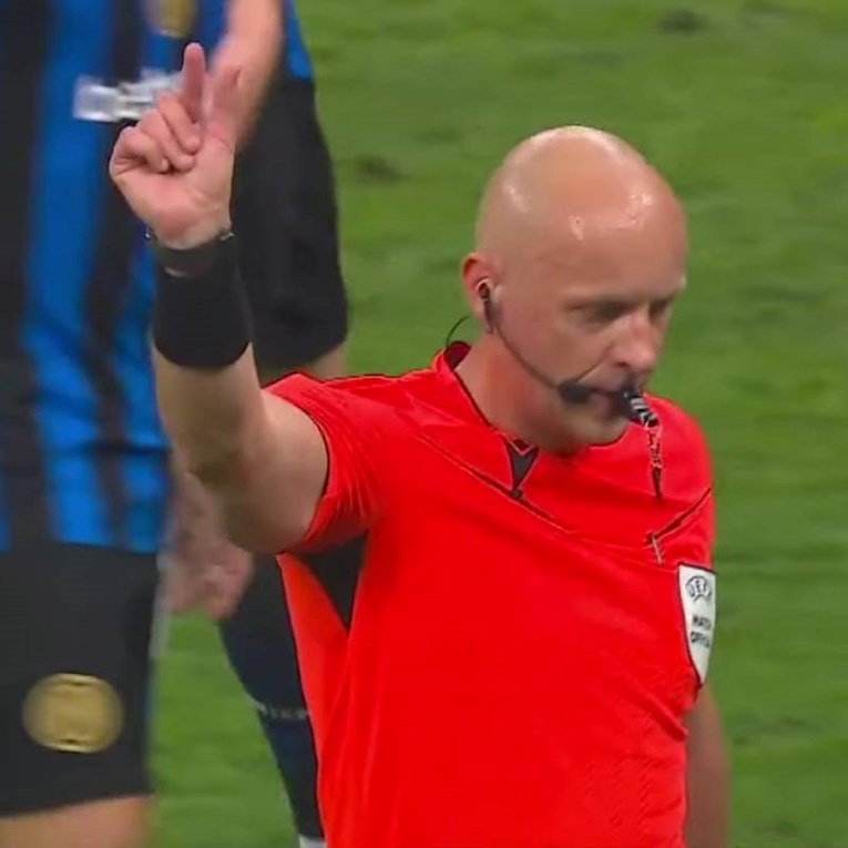 Glavni sudac Szymon Marciniak pokazao je na bijelu točku, no VAR ga je ispravio utvrdivši da je kontakt bio izvan kaznenog prostora. Marciniak je potom gestom pokazao koliko je malo nedostajalo da momčad Hansija Flicka dobije penal, što možete vidjeti u priloženom videu od 6:38.