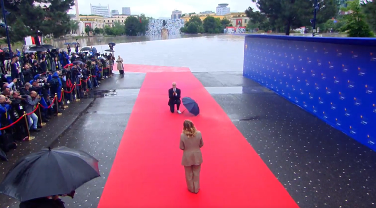Albanski premijer na koljenima dočekao Meloni, pogledajte snimku