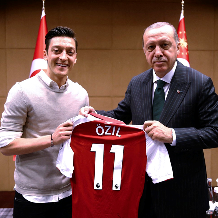 Özil, koji je turskog podrijetla, bio je kritiziran tijekom nogometne karijere zbog svojih veza s Erdoganom. Povukao se iz njemačke reprezentacije 2018. godine nakon što je njegova fotografija susreta s turskim predsjednikom izazvala burne reakcije.