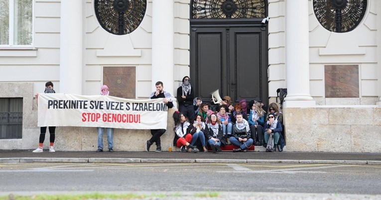 Aktivisti su istaknuli transparent "Prekinite sve veze s Izraelom! Stop genocidu" i izvikivali: "Free, free Palestine" te "Plenki, Plenki, gdje se kriješ, genocidu ruku miješ!" Ispred ulaza u Ministarstvo uklonili su ih pripadnici interventne policije.