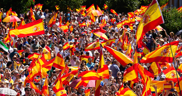 DESECI tisuća ljudi okupili su se u središtu Madrida kako bi prosvjedovali protiv vlade španjolskog socijalističkog premijera Pedra Sáncheza. Prosvjednici zahtijevaju da se raspišu prijevremeni parlamentarni izbori, dok se Sánchezova stranka, administracija i obitelj suočavaju s nizom optužbi za korupciju.