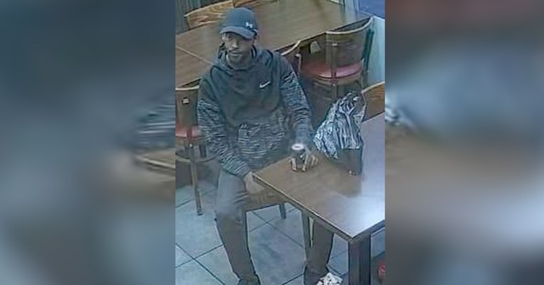 Policija je objavila snimku muškarca iz nadzorne kamere – sjedi za stolom u ugostiteljskom objektu s limenkom pića u ruci. Na sebi ima crnu bejzbolsku kapu marke "Under Armour" i crnu sportsku jaknu Nike.