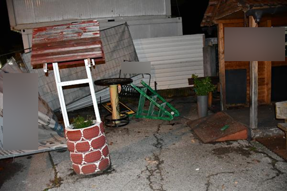 U zanošenju je prešao u suprotnu traku, a zatim i preko rubnog kamena, nakon čega je naletio na limene ploče s ceradom, metalnu ogradu, dva drvena stupa, metalni kontejner u vlasništvu trgovačkog društva kao i na ugostiteljski stol te stalak za bicikle u vlasništvu ugostiteljskog objekta.