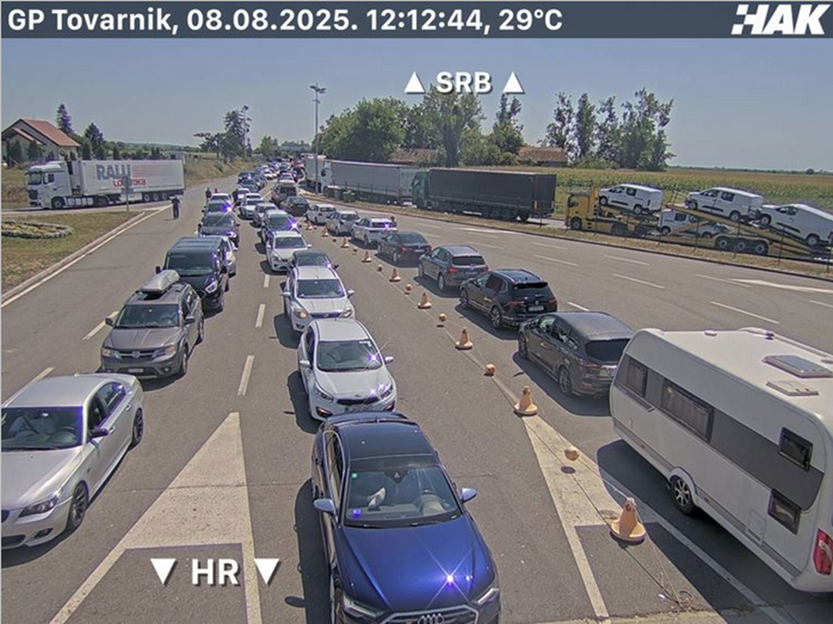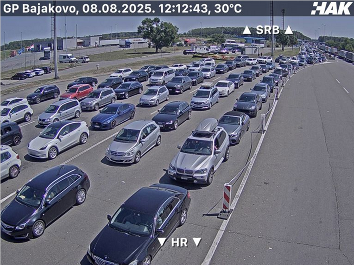 - kolona osobnih i teretnih vozila pred graničnim prijelazom Bajakovo u smjeru Srbije je oko 1 km.