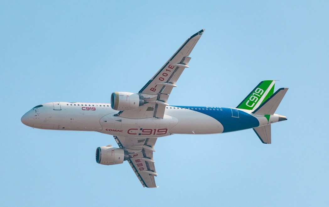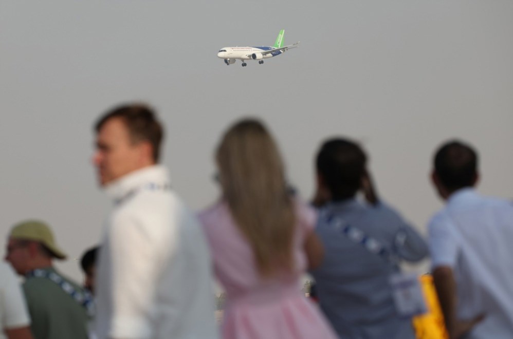 KINA je na Sajmu zrakoplovstva u Dubaiju predstavila svoj mlazni putnički zrakoplov C919, što je njegov prvi nastup izvan istočne Azije, a ujedno predstavlja i planove za natjecanje s Airbusom i Boeingom. Bijeli C919 s plavim i zelenim detaljima poletio je oko 15:30 sati po lokalnom vremenu i napravio nekoliko krugova na nebu, a onda sigurno sletio na pistu međunarodne zračne luke Al-Maktum.