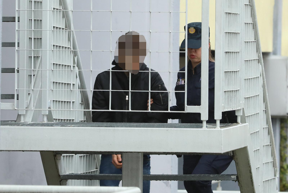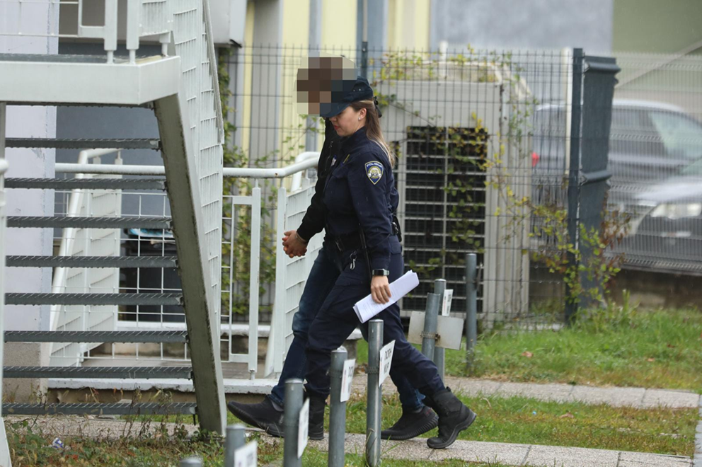 U PROSTORIJE DORH-a u Remetinečkoj ulici doveden je mladić uhićen zbog požara u Vjesniku. Imao je lisice na rukama, a vodila ga je policajka.