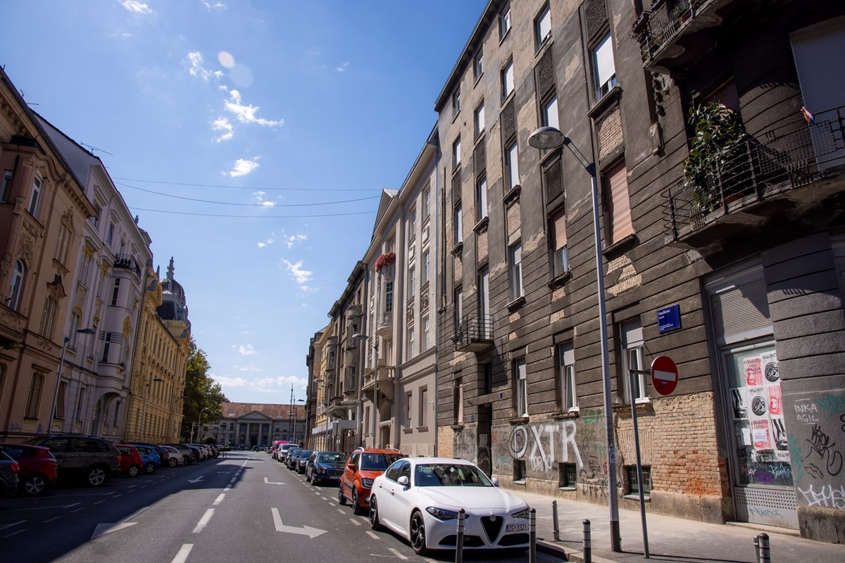 JUTROS se u centru Zagreba, u Haulikovoj, urušio dio fasade sa stambene zgrade. Dijelovi su padali na pločnik i kolnik.