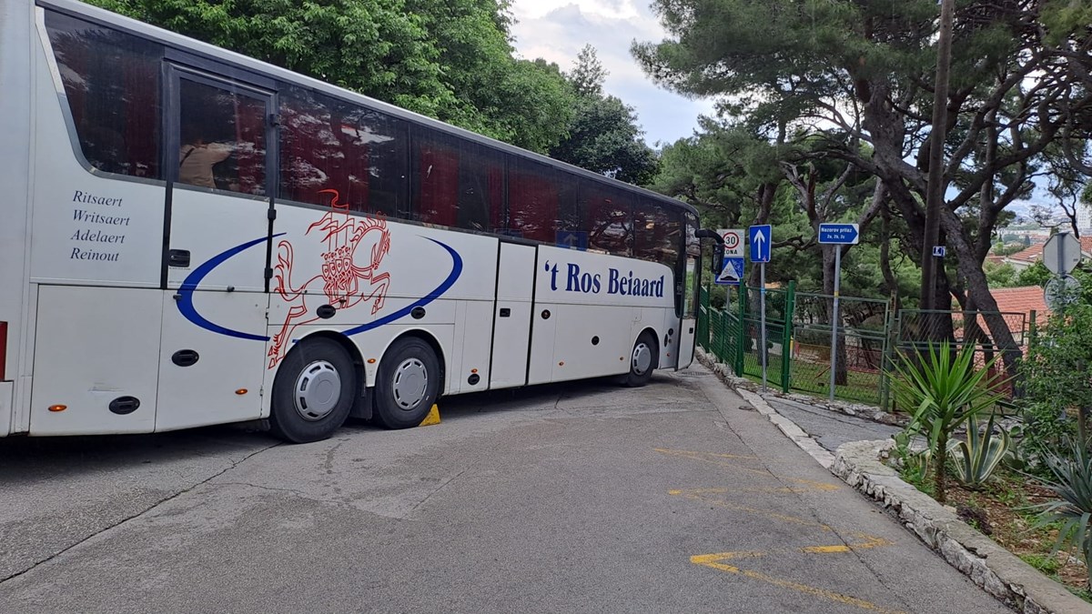 DANAS je jedan autobus ukrajinskih registarskih oznaka zbog nesporazuma blokirao cestu prema vidikovcu na splitskom Marjanu, na adresi Nazorov prilaz 1A, zbog čega je pozvana policija.