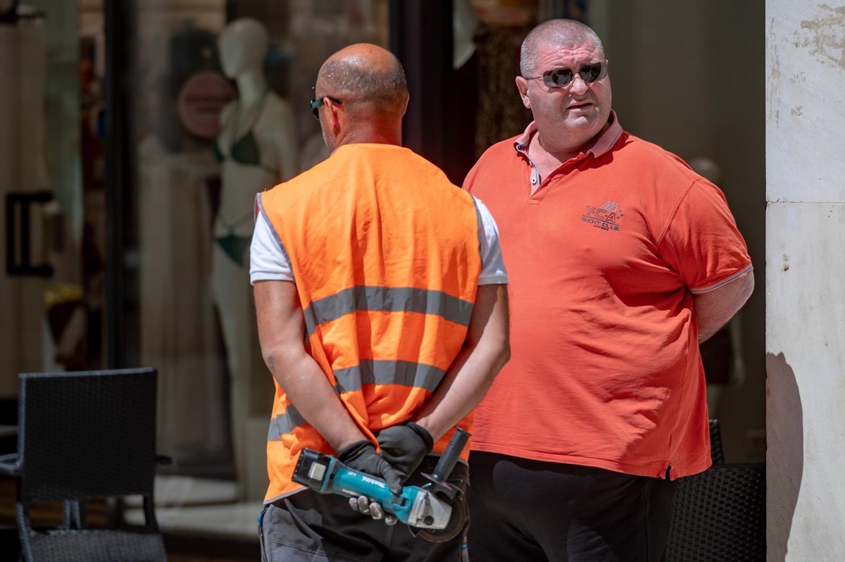 Događaj na Kalelargi privlači veliku pažnju promatrača i prolaznika, javlja 057.info. Satima je kombi ovlaštene tvrtke koju su angažirali komunalni redari bio parkiran ispred terase Mimoze.