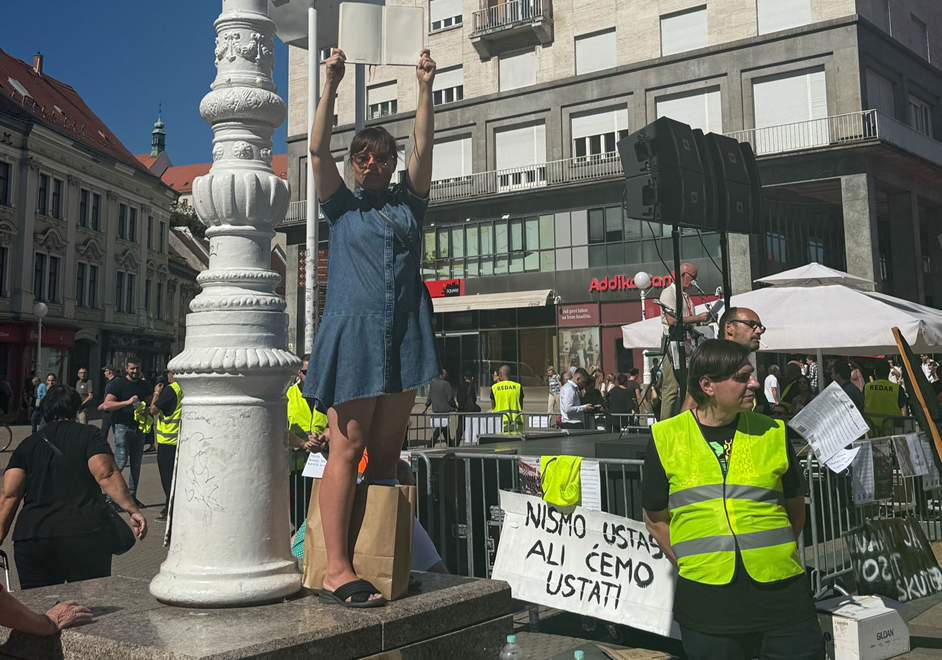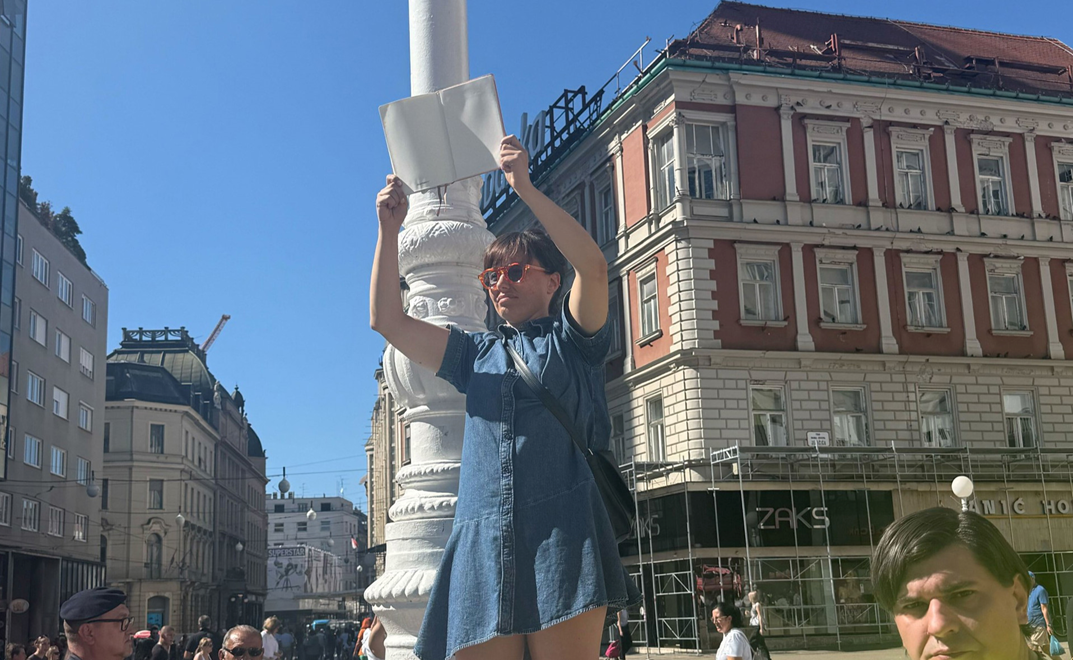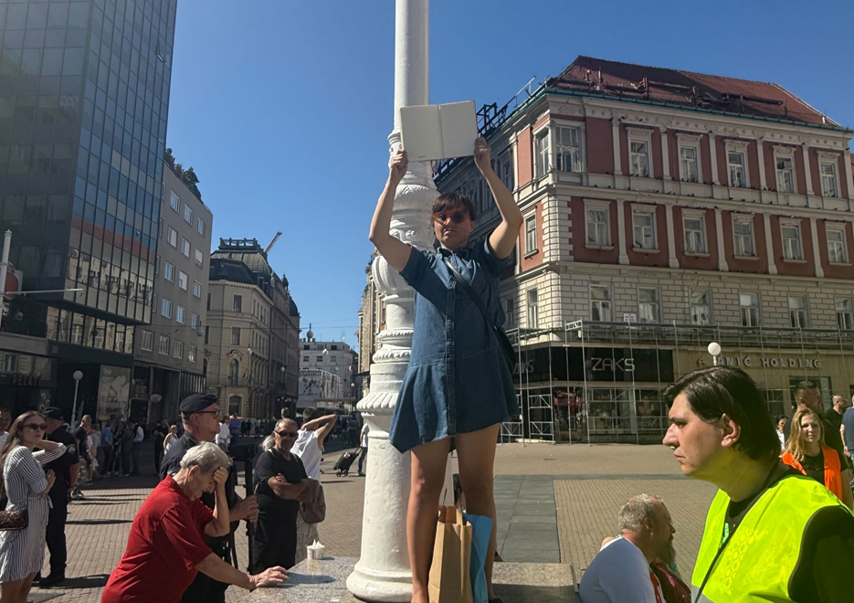 U jednom trenutku došlo je do manjeg incidenta. Naime, na postolje stupa na Trgu bana Jelačića popela se djevojka koja je držala otvorenu knjigu. Na otvorenim stranicama nije pisalo ništa. Kad je upitana što to znači, kazala je da to predstavlja "emptiness" odnosno "prazninu".