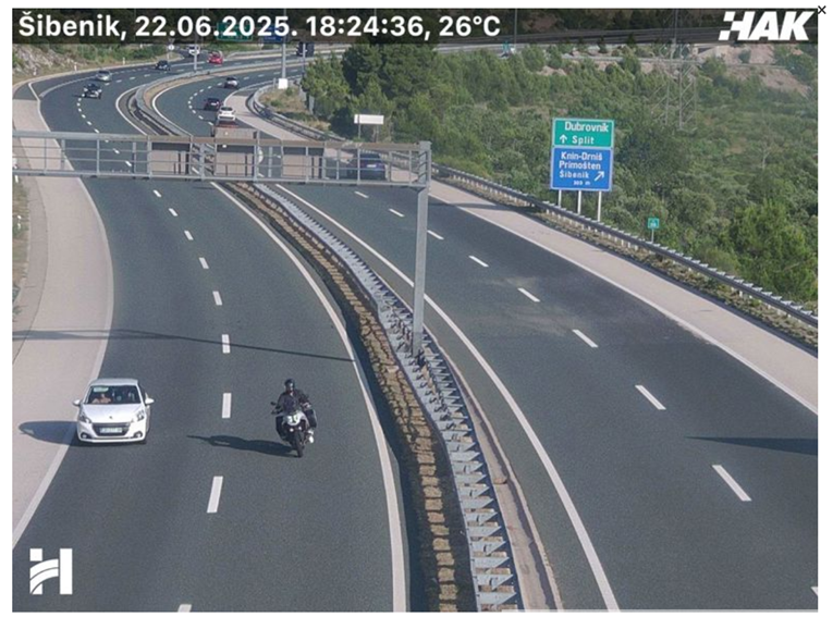 HAK JE U 18 sati objavio objavio: "Opasnost od vozila u suprotnom smjeru na autocesti A1 između čvorova Šibenik i Pirovac. Molimo korisnike za dodatan oprez."