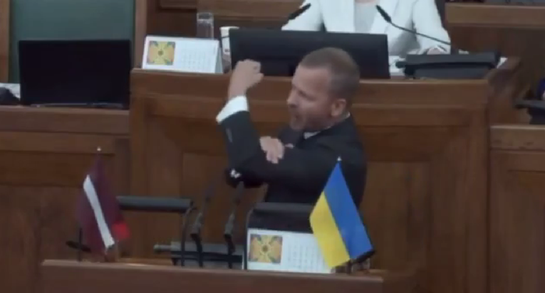 LATVIJSKI zastupnik prošli je tjedan izbačen iz parlamentarne dvorane nakon što je govorio na ruskom jeziku i neprimjereno gestikulirao, izvijestio je latvijski javni servis LSM. Predsjednica parlamenta Daiga Mieriņa potvrdila je da zastupniku prijeti i stroža kazna u obliku zabrane prisustvovanja na šest sjednica.