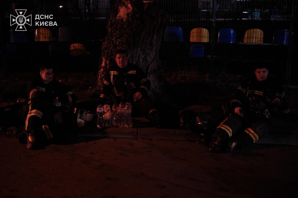 Ukrajinska državna služba za hitne slučajeve izvijestila je da su spasilački timovi evakuirali više od 40 ljudi iz pogođenih zgrada. Zabilježeni su udari, požari i evakuacije u četvrtima Podilskij, Dniprovskij, Desnjanskij, Solomjanskij, Svjatošinskij i Obolonskij. U četvrti Desnjanskij izbio je požar koji je zahvatio katove od petog do osmog jedne višekatnice, pri čemu je jedna osoba smrtno stradala.
