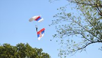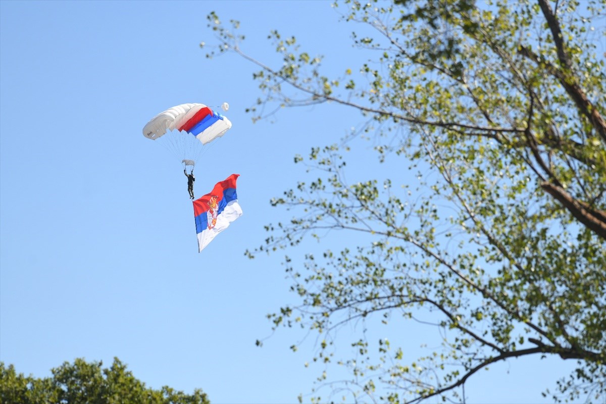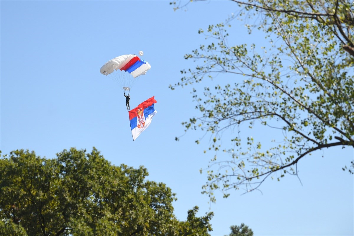 Završila je skokom padobranaca iz helikoptera H-145, s visine između 1500 i 2000 metara. Jedan padobranac je nosio zastavu Republike Srbije, a drugi zastavu Vojske Srbije. Prethodno se mogao vidjeti prelet gostujućih francuskih zrakoplova Rafale kao i nalet helikoptera MUP-a.