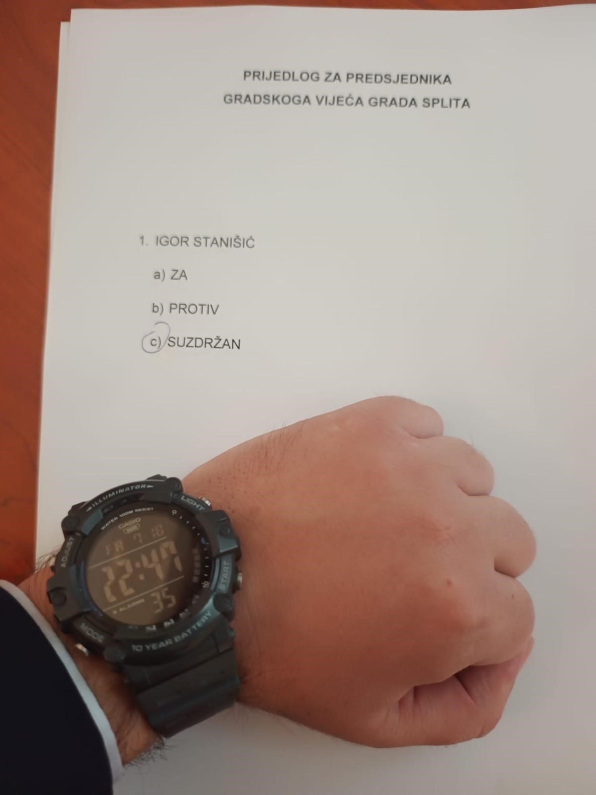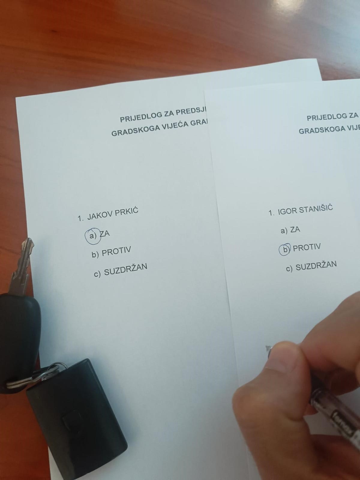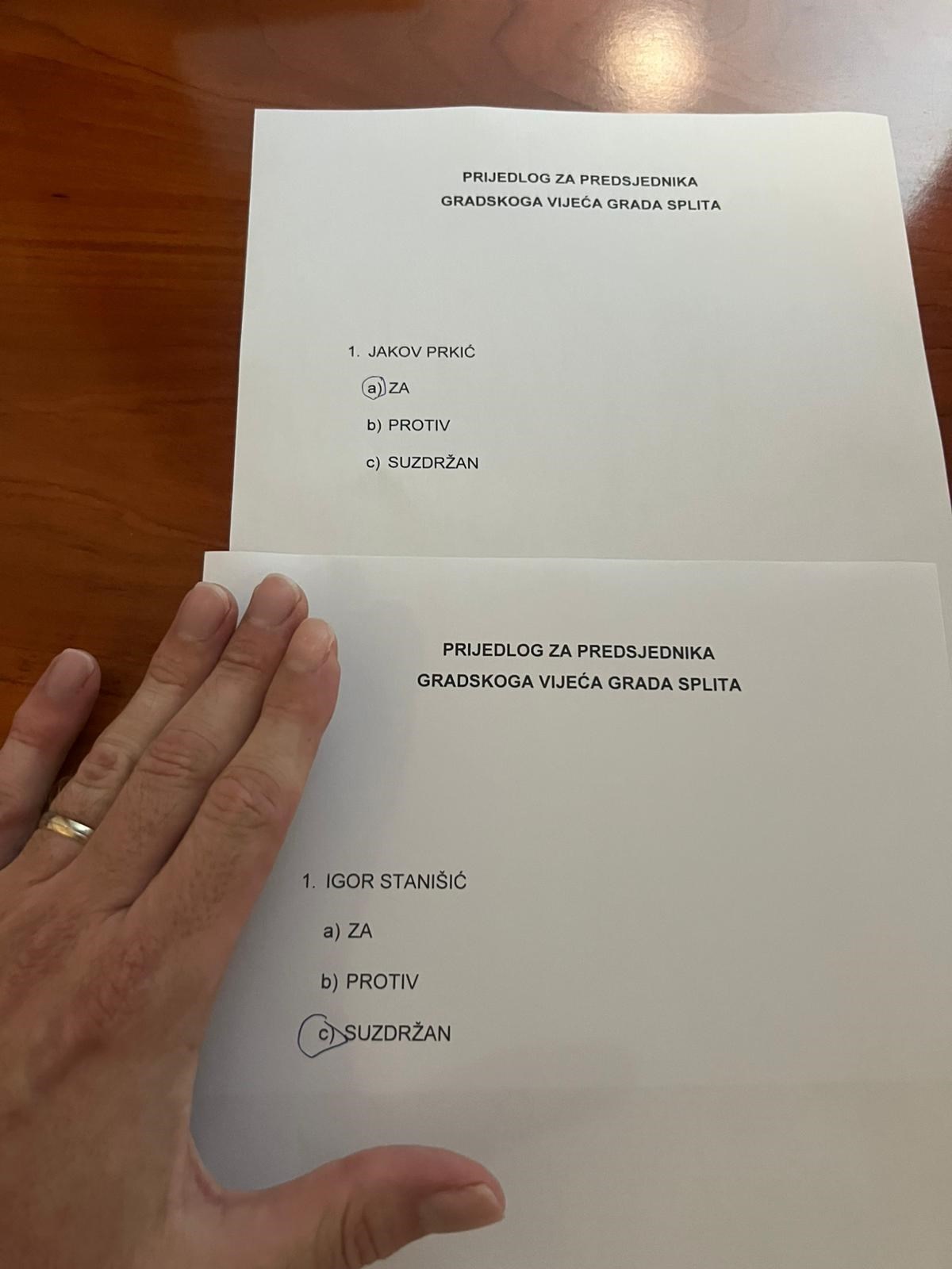 Imamo 11 fotografija, s 11 glasova za Jakova Prkića, za kojeg vjerujemo da je u ovom trenutku najbolje rješenje za predsjednika Gradskog vijeća, bez ijednog glasa za Stanišića", rekao je Skoko, dodajući da je ostalo otvoreno samo jedno pitanje, na koje odgovor znaju Tomislav Šuta i jedan "oporbeni" vijećnik ili vijećnica.
